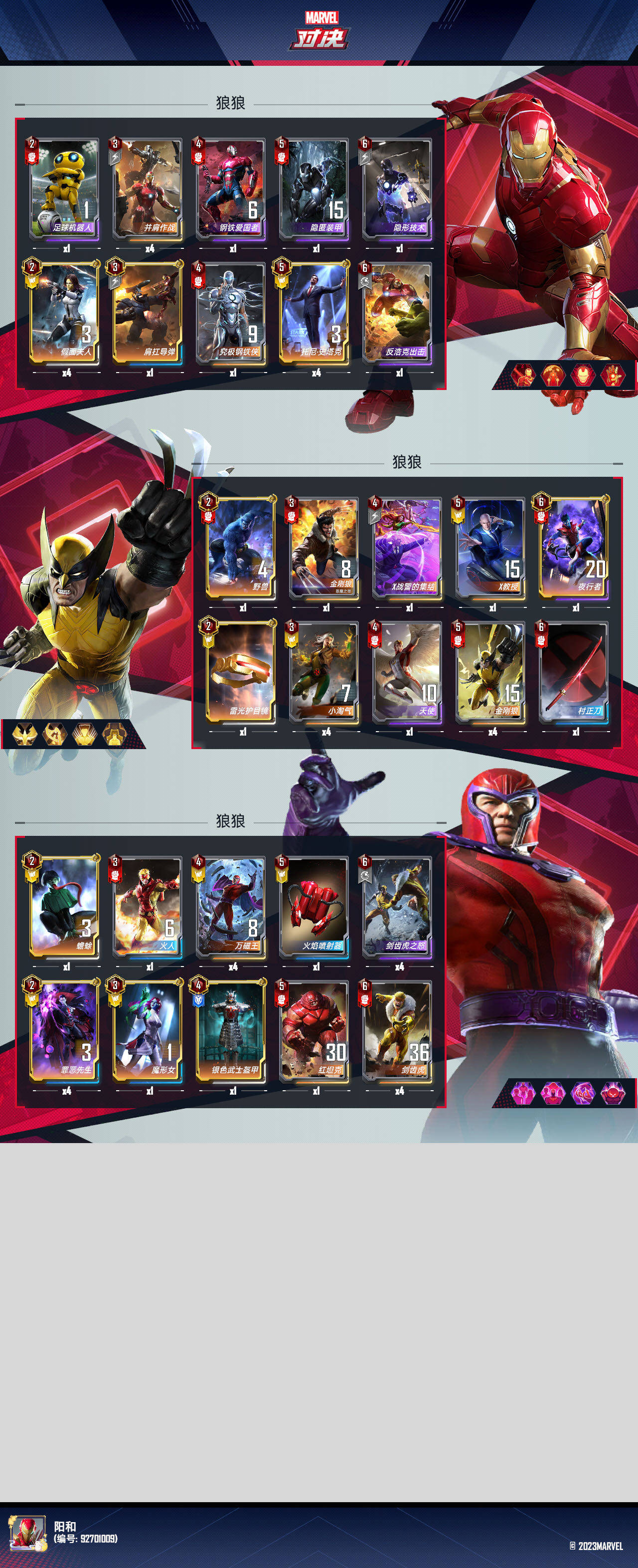 大家好,我是一名资深的潜水员阳和敷布(id:92701009)这是我入营以来的第一篇文章,腾出一些时间终于完成了。我没有参加过漫威对决的内测,国际服也没有玩过(可能那会还在炉石的路上)不错还是赶上了国服的开服,一直玩到现在。这期间也曾经想过退坑,也联系过虐哥出号。细细琢磨目前确实没有一款卡牌竞技的游戏可以替代。差不多每月更新的赛季也都跟了过来,正所谓是一代版本一代神,代代版本看吐槽啊~链接卡牌还在继续,期待后边的新思路和新词缀或是关键字拓展吧。