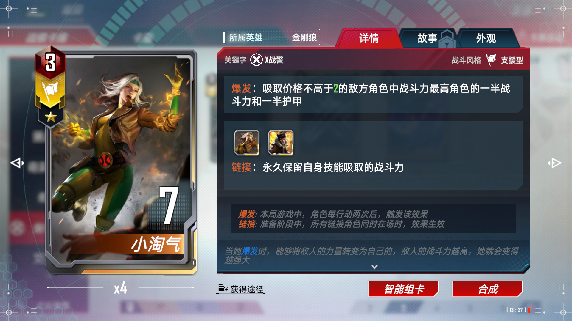 作用很多,三联加攻击稳战力关键,同小淘气一样常驻角色,送死触发链接效果