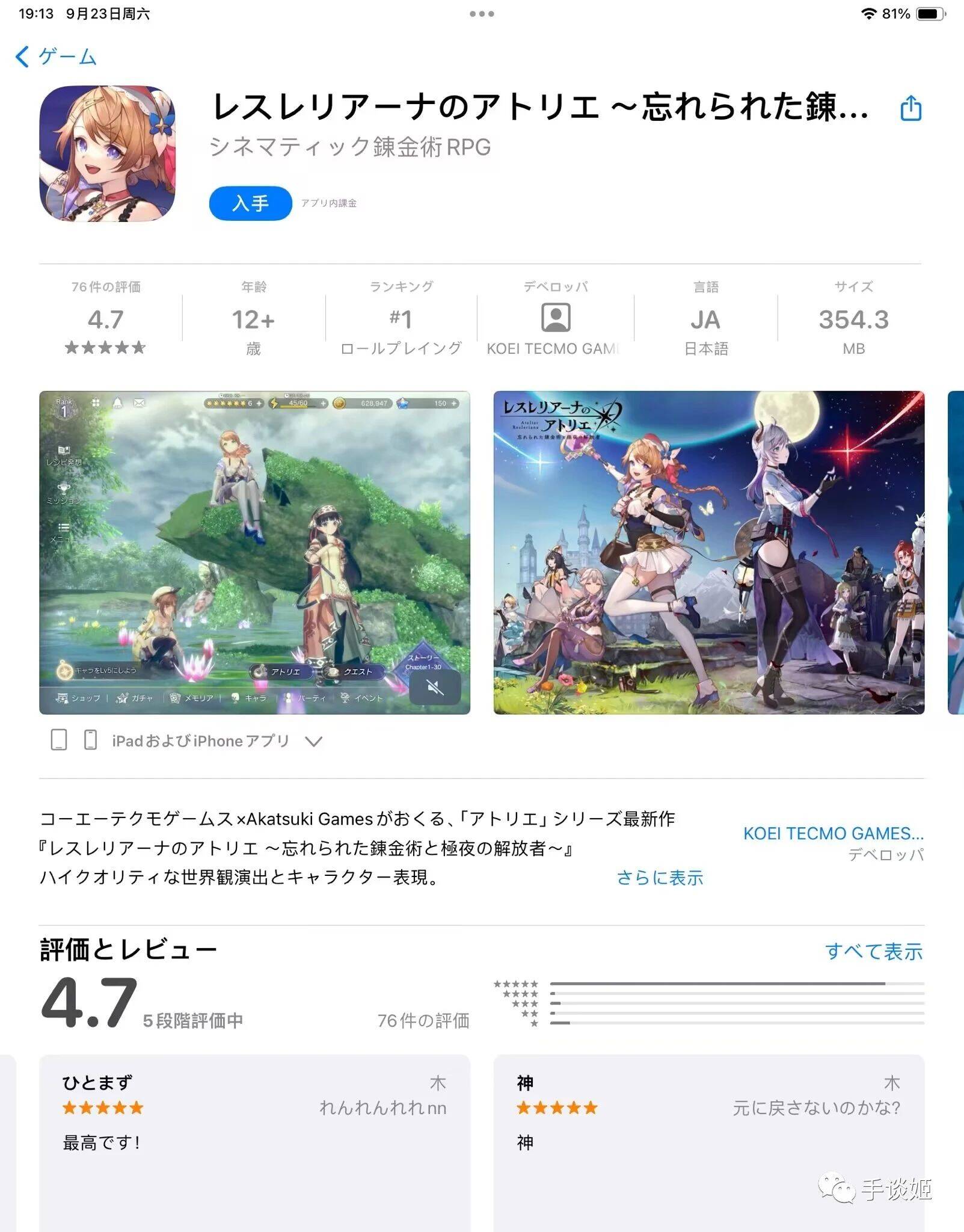 如果手谈姬不说,可能很多姬友不太了解的是,《炼金工房》系列正传第25部,手游《莱丝蕾莉安娜的炼金工房》在今天上线了,什么?你不知道炼金工房?那你大概听说过“十年炼金无人问,一朝肉腿天下知”这样的说法。