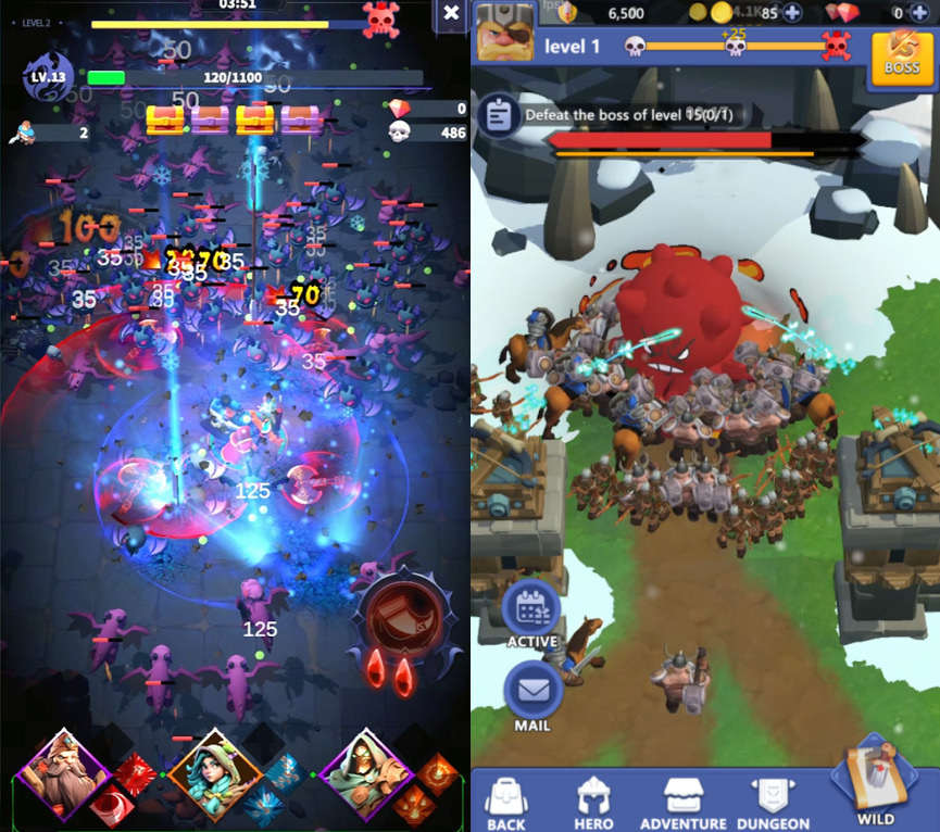 玩法的主要区别在于玩家控制的是一支由3名角色组成的队伍,每名角色最多可以学习和升级3个技能。由于技能之间不会产生连携效果,所以Roguelike的乐趣会大打折扣,但这样也有机会和英雄养成的内容相挂钩,为之后SLG的玩法部分做铺垫。