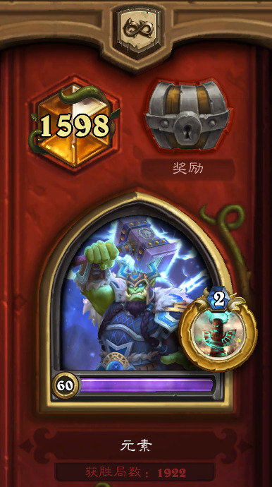 直到六个版本后,元素萨得到了连续数次补强,终于在年末的大乱斗版本勉强成为T3卡组。那一年我大概打了几百局元素萨——主要是很享受连续不断使用黄边牌的感觉。