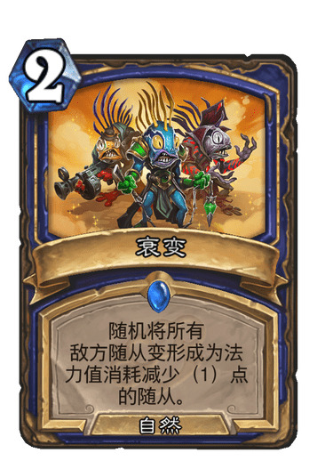 1)经过无数次被界雷诺,姐夫打崩后决定加入的。实战效果出乎预料,卡对面费用的效果也是超赞。唯一的缺点就是有时会卡先祖召唤。先知先觉抽到他也少一只嘲讽狼。但是总的来说利大于弊,并且也是我放弃泥沼变形怪的一个原因,大家可以酌情替换为泥沼变形怪。