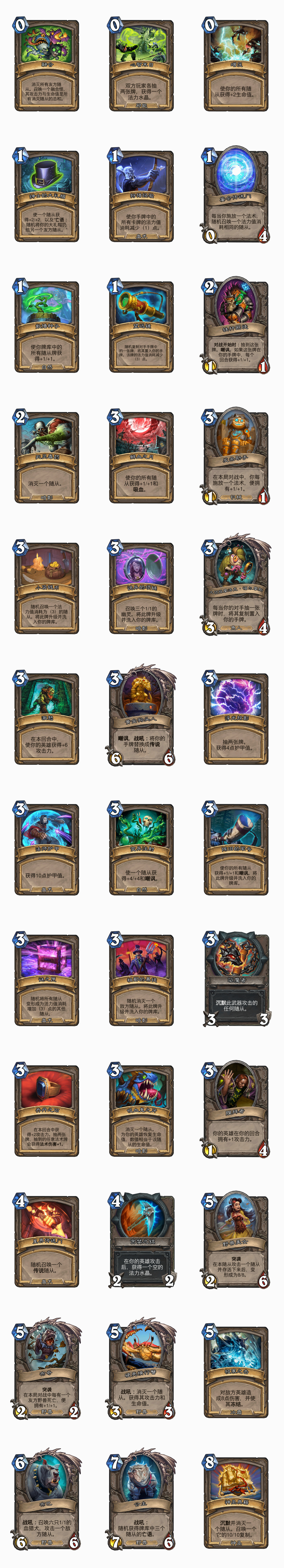 - [构筑] 部分具有“当随从死亡时”类效果的卡牌更新为使随从获得一个具有该效果的亡语,无游戏性影响*,名单如下:【补丁日志本来说的是“这些牌的基本效果不变但某些结算会变”,英文博文已更正】