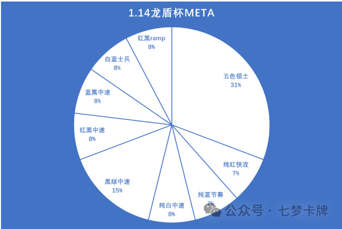 四强的卡组构成是1套白蓝士兵、1套纯红快攻、1套五色领土、1套蓝黑中速。
