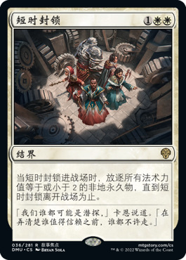致昏重击和短时封锁的数量选择上,我选择减少一张原本带4张的致昏重击,增加一张短时封锁,因为现在环境里下毒套牌兴起,我期望多的这张短时封锁能让我更好的面对这个对领土来说一九开的对手。