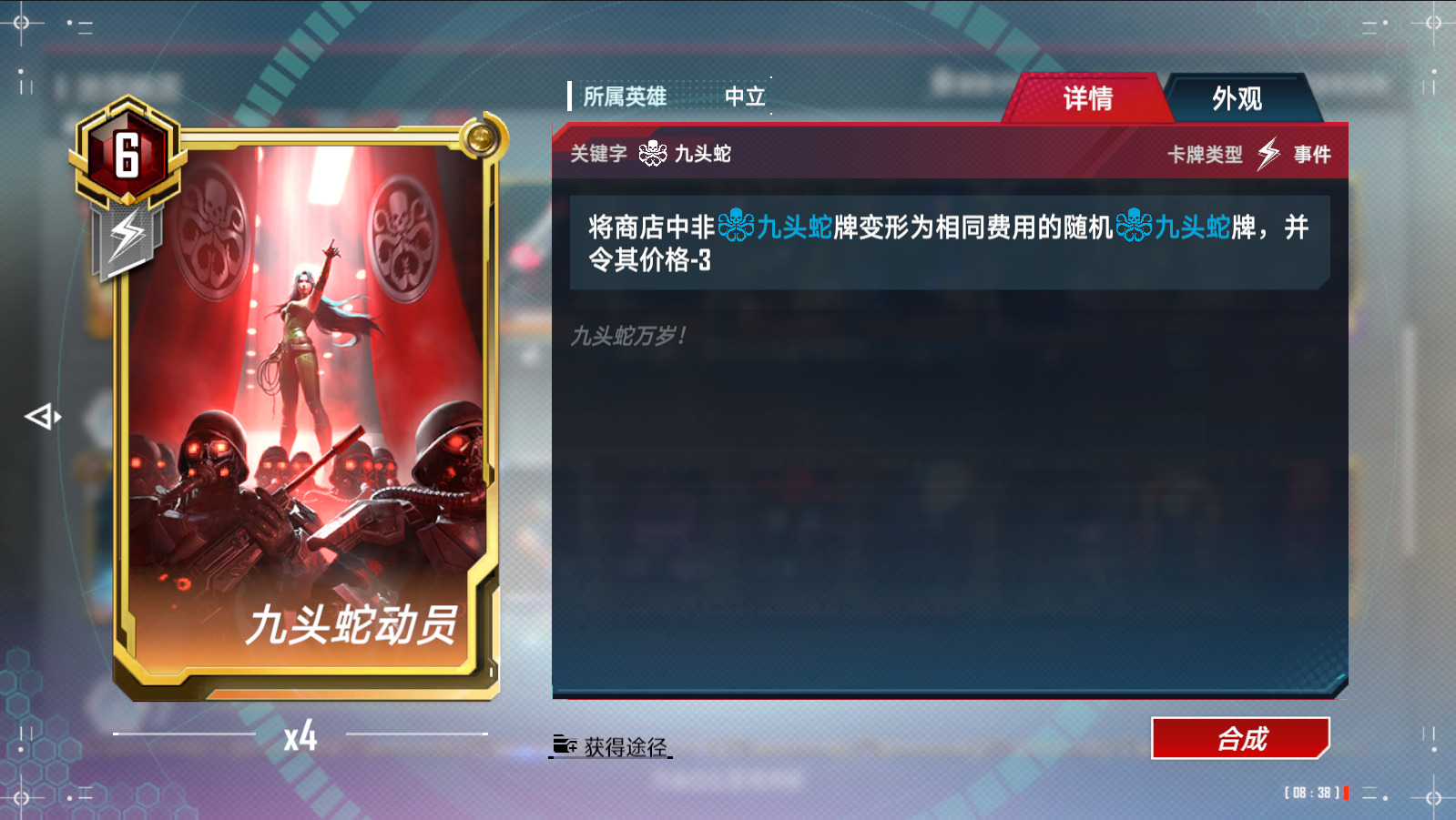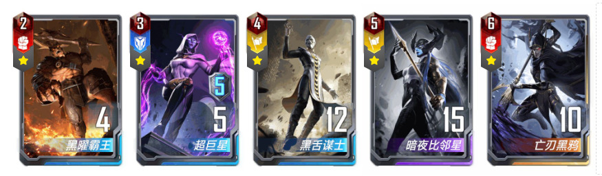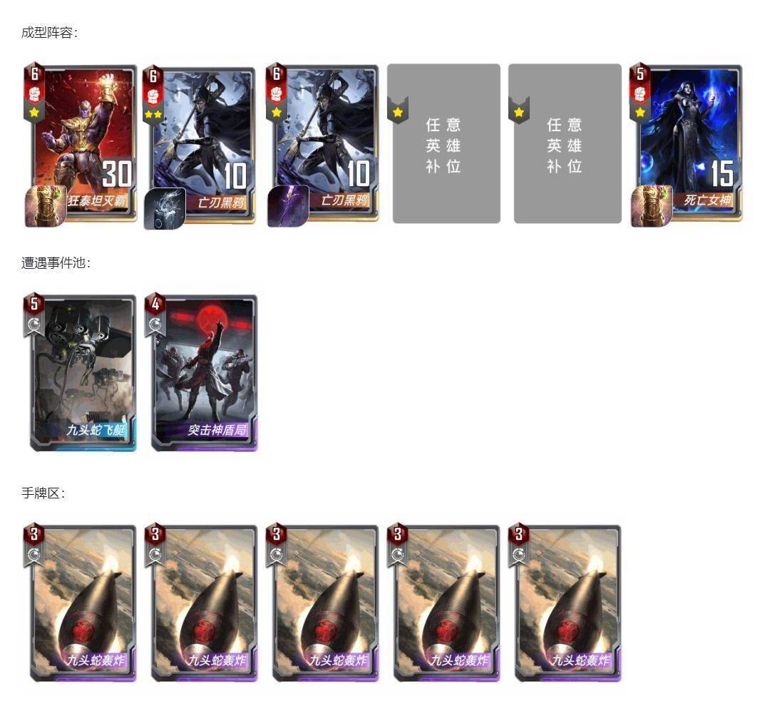 5、再加上死亡女神(一星就行了)、突击神盾局,最后用九头蛇动员找第五张九头蛇轰炸;