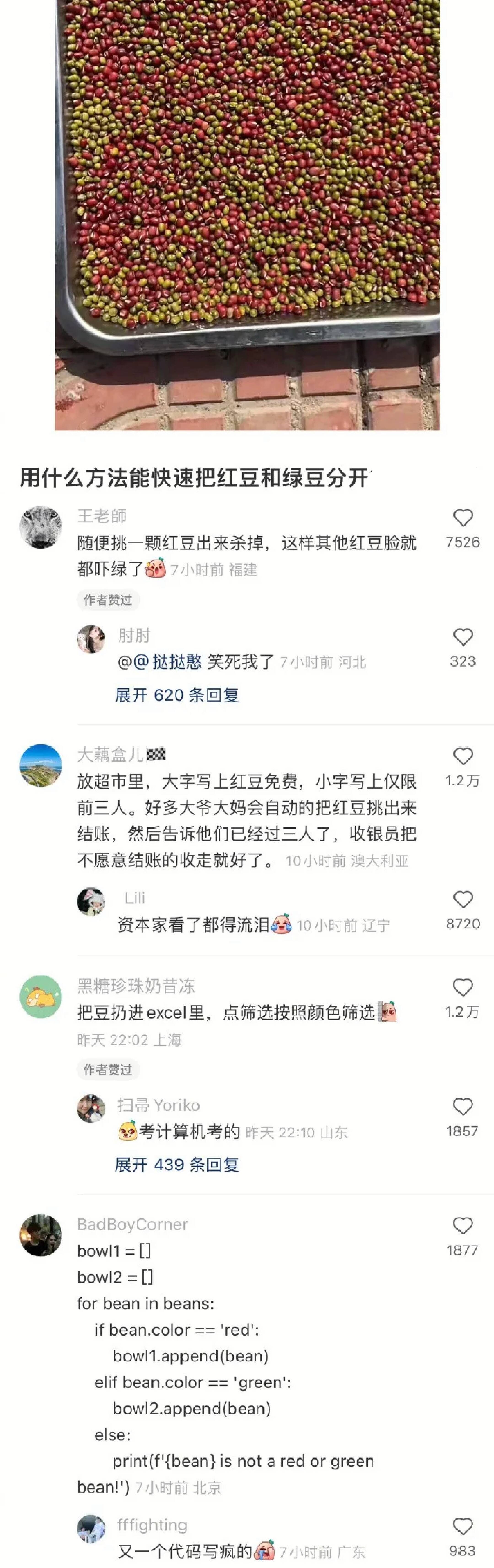 用什么方法能快速把红豆和绿豆分开