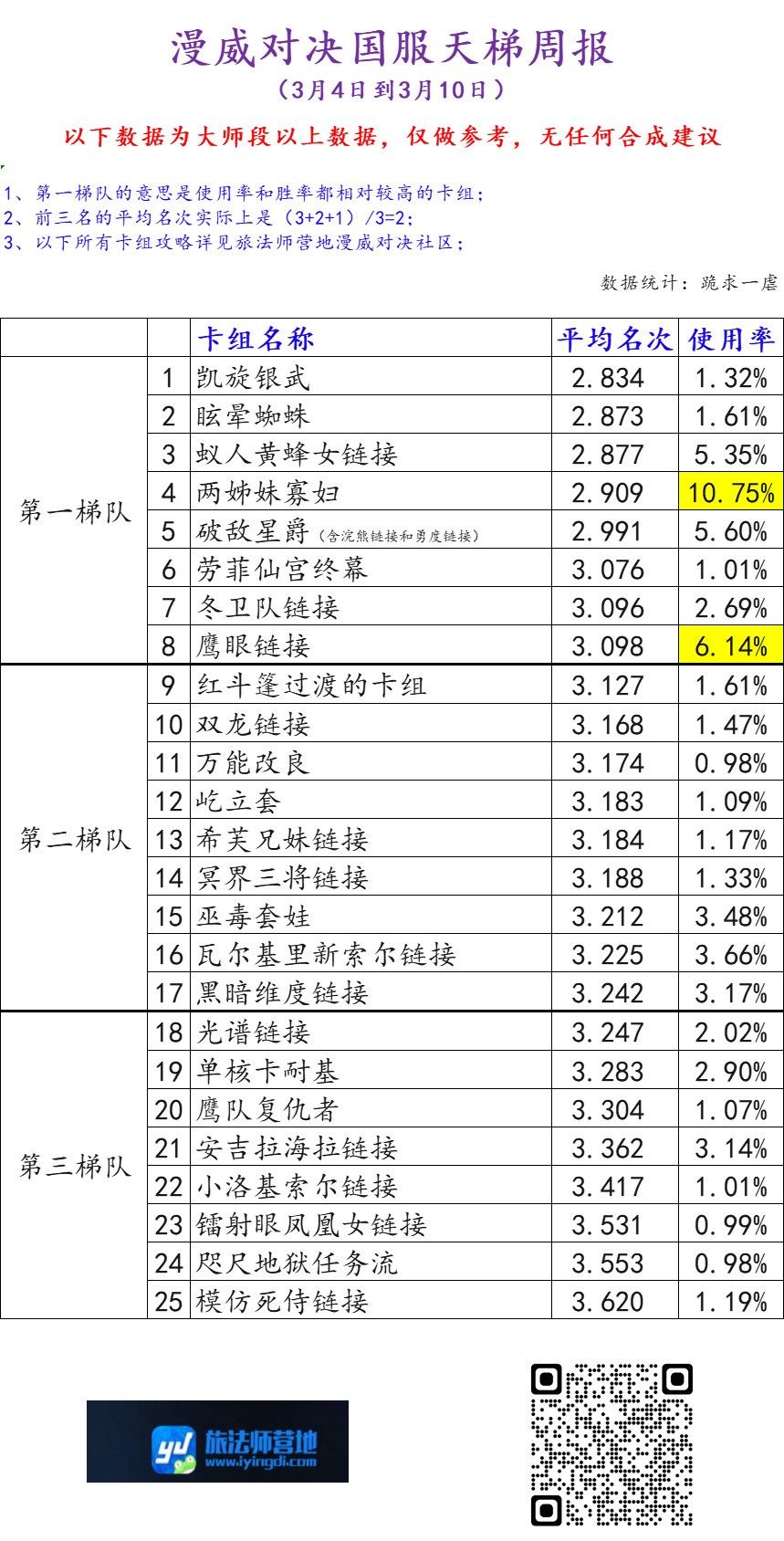 本周报数据仅做参考,本文不做任何卡组推荐、合成: