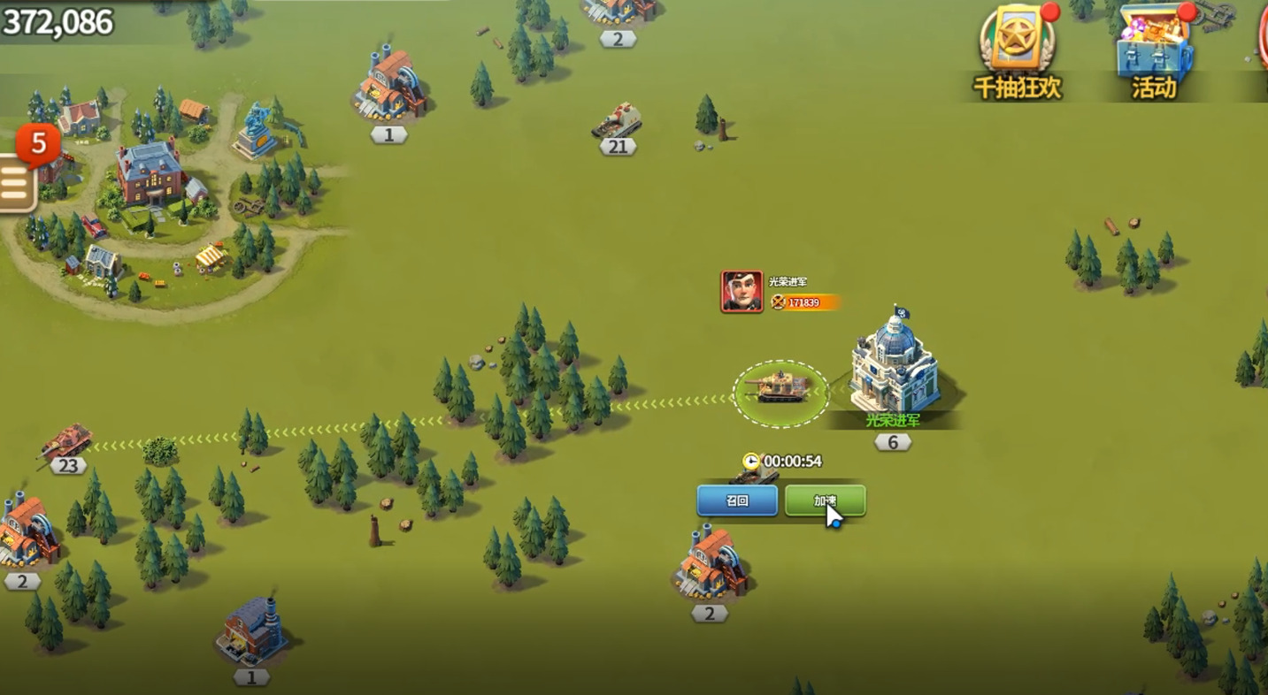 如果距离较远,也可以对行军「加速」。使用道具或钻石可以减少行军时间,大幅提高作战效率!