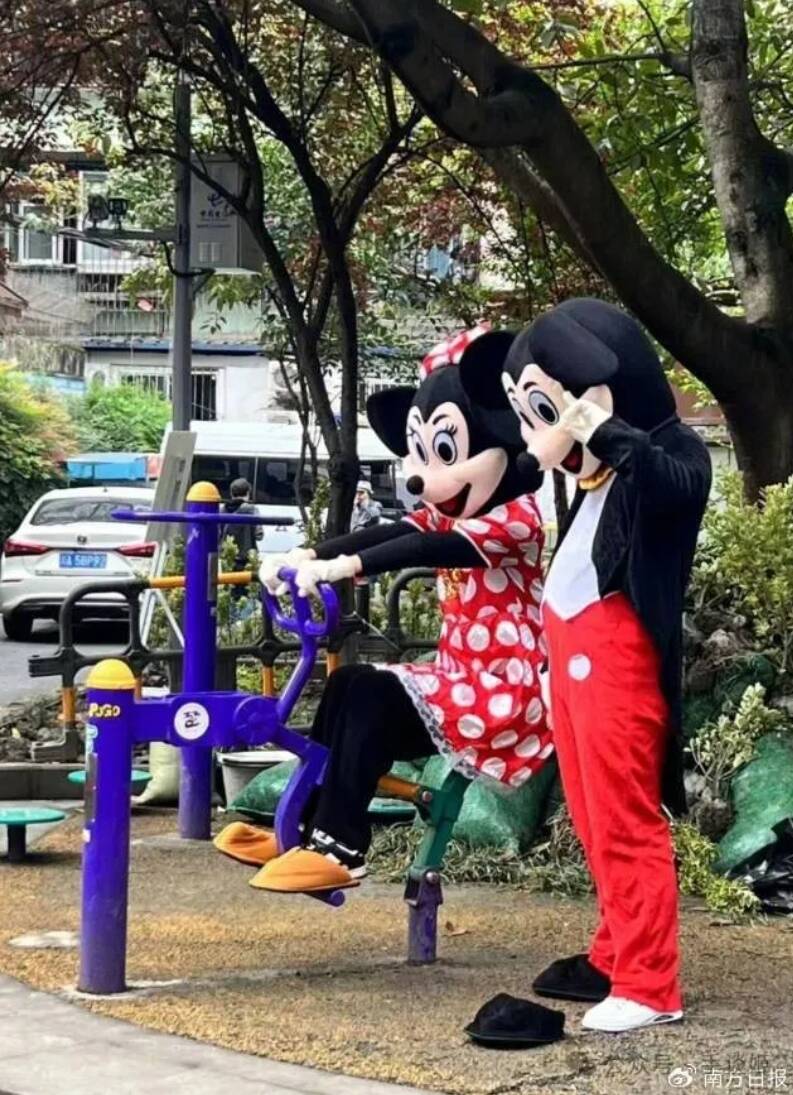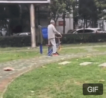 仔细观察网友们制作的梗图,这“成都迪士尼”的标志不是标志性的迪士尼大城堡,而是……小区楼下常见的健身器材。手谈姬以前会给它取名叫“骑马器”,此前虽不知它是干什么用的,但实际用法肯定不会是下图老爷爷这样强健沟子用的。