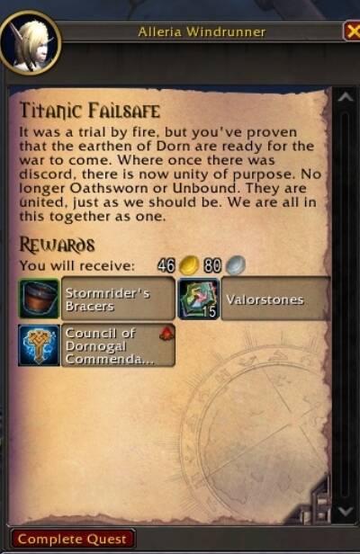 It was a trial by fire, but you've proven that the earthen of Dorn are ready for the war to come. Where once there was discord, there is now unity of purpose. No longer Oathsworn or Unbound. They are united, just as we should be. We are all in this together as one.