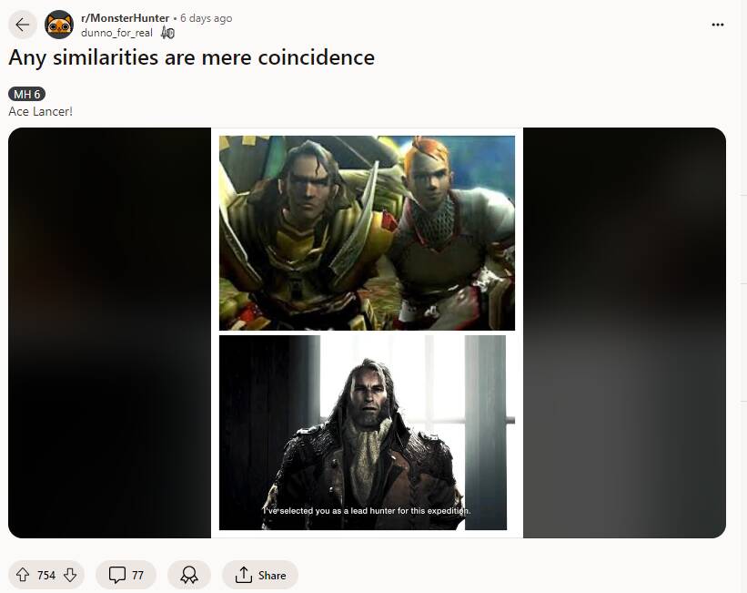 值得注意的是,杰玛可能并非全新角色,有推断认为她就是《怪物猎人4》中加工屋的NPC长大后的样子,如此推断的根据就是在全新宣传片中出现的年长猎人与《怪物猎人4》中的“Ace Lancer”造型完全一致。