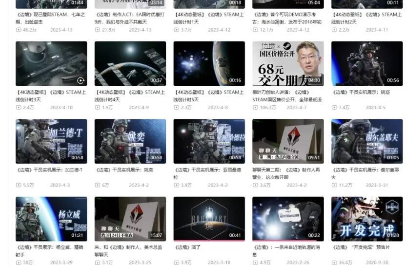 此后《边境》官方开始一反常态,频繁更新,从3月18日一直到4月13日上线steam以来,更新了13个视频,相当高产。