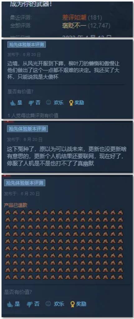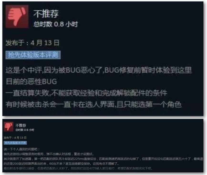 但是游戏上线后,获得了各种各样的差评,直接在steam上收获了褒贬不一的评价。