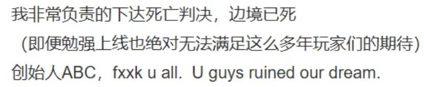 《边境》停服的预告彻底伤透了部分玩家的心。