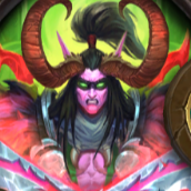另一种赢法就是传统看客瞎打法,前期留刀或者找刀的情况下(特别是配合现在畸变模式的某些buff),尽快过到看客,比较理想的情况是5费下3费看客后1+1找马瑟里顿或者找到减费后的渊狱贝斯手(后者应对德的实际表现更好);一般这种情况下斩不死就要应对德的超展开和精灵龙奇利亚斯等等了,同时还要防法强双横扫清场以及如果自己卖血卖太多还要防对面横扫+穴居人宝石投掷者偷鸡斩杀……对局拖到这种时候纯看对面糊不糊了,糊就赶紧下把完事了。