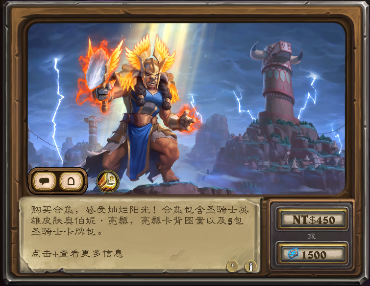 含构筑模式骑士新皮肤“奥伯妮·亮鬃”及配套卡背,和5骑士包,售价1500符文石。