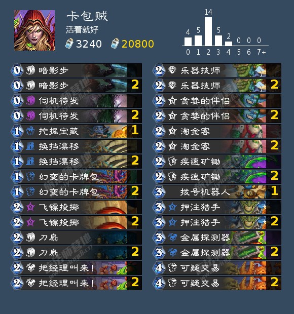 一次性成就,挺简单的。毕竟盗贼有大量回手和低费海盗。带上海上劫掠定向检索就好了。如果能配合426搞到1张1费的金胡子就更简单了。