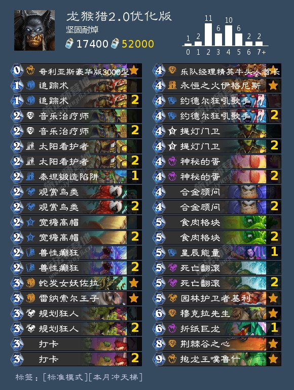 但有一说一,自从我只带2只野兽,打大法术法和其他铺场职业和后期卡组,就像爷爷打孙子。只要发牌员不搞针对,基本都能赢。