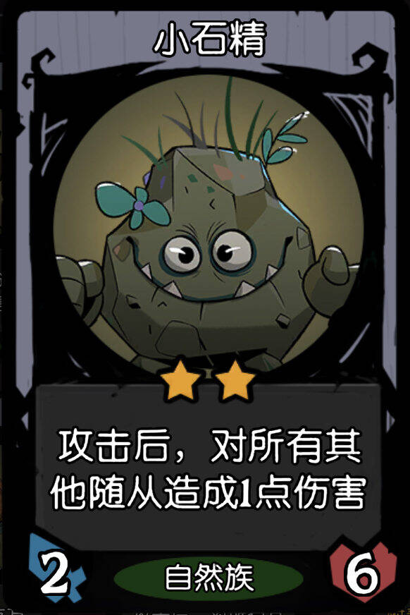 小石精:二本怪,前期战力就不错,而且有件前期神装朴素法袍,拿到基本稳血,小技巧就是小石精击杀自己的友方随从也能算是击杀了一个单位,可以适当放一些一血随从在场上当击杀目标,而且有小石精也可以配合来刷经济,比如拿到装备发电机,后期拿到吸血鬼剑再配合完整的击杀体系将会战力爆炸!
