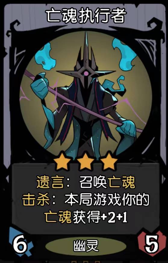 亡魂执行官:同时兼顾了养亡魂的作用,保底还能召唤一个亡魂来进行战斗,现在养鬼是非常强力的流派,如果后期发了亡魂流的组件也可以立刻转型