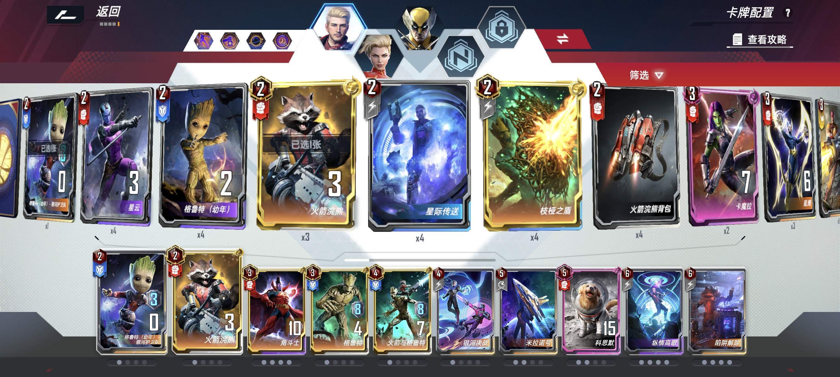 3费:角斗士链接,这里四张带满;格鲁特链接过度