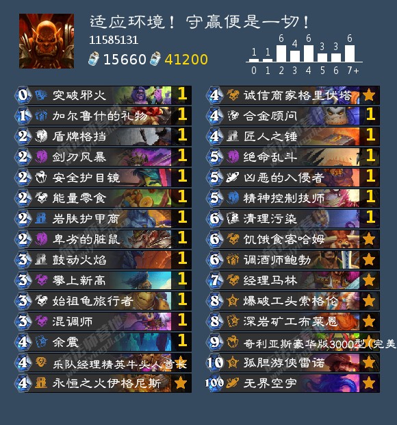 元素法释组合技节奏快攻,非常吃牌序,脏鼠一定要有解再下,可以抓他熔岩镜像,三张过牌元素(熔岩、炽焰、角斗士)还有直伤元素。最好别先跳费,场面>血量>跳费节奏。