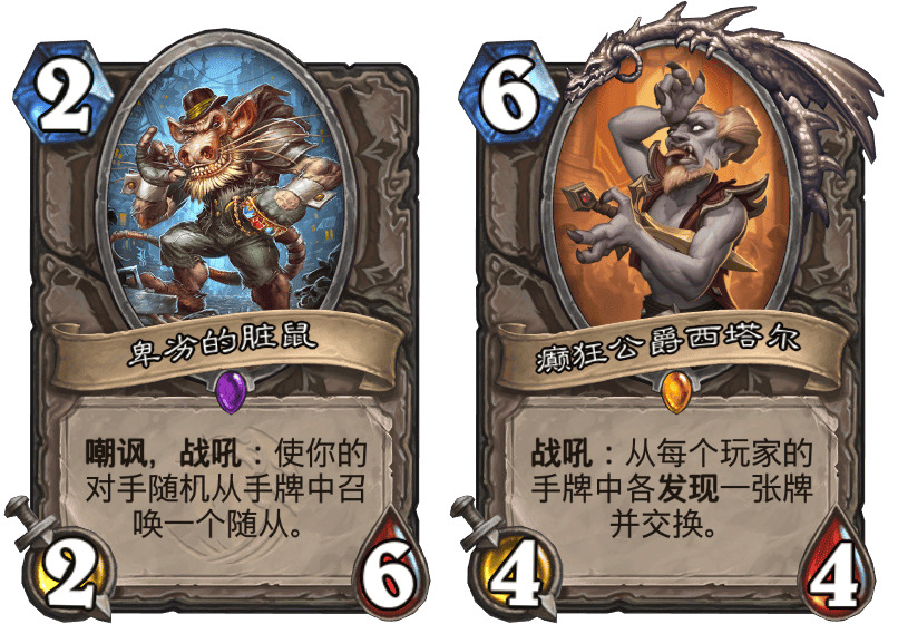 战吼“摧毁你对手手牌中法力值消耗最低的牌”很稳定,在标准模式中甚至也有很明确的目标,但从整个狂野历史的角度来看,它真的不够好。过去,现在,以及可以预见的未来内,很多非快攻/节奏卡组都是会携带大量润滑作用的卡牌和解牌的: