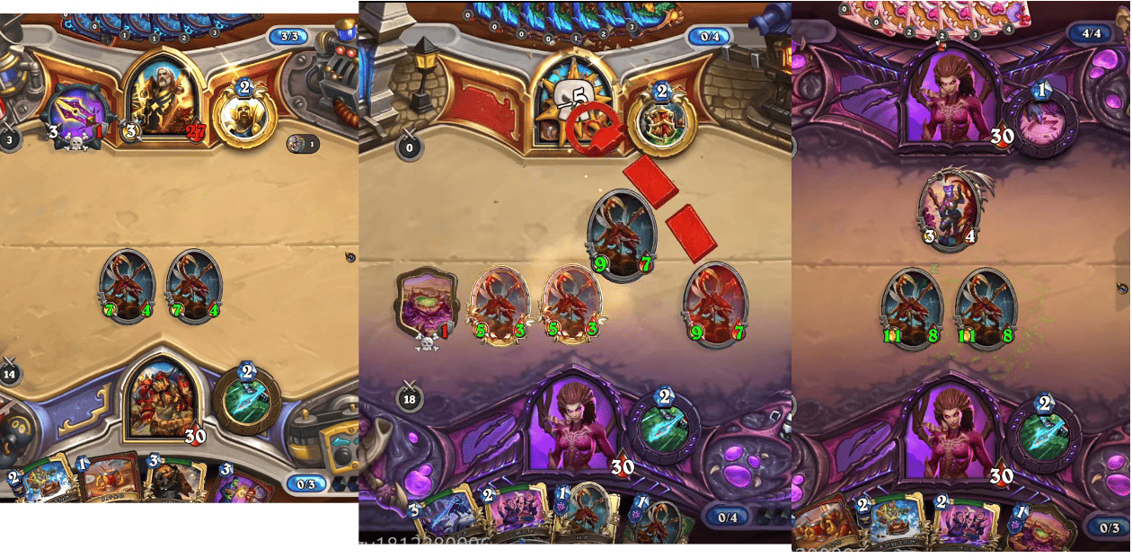 这样构筑的理论可能可以在起手拥有孵化池(跳虫)配合预留泊位和金杯的情况下,非常容易在3费的情况下养出2个身材硕大的跳虫(参考下图名场面)。在3费情况下,目前环境除了萨满的锁定和盗贼牧师的沉默以外只剩下非常一部分的解牌能够解掉两个大跳虫。