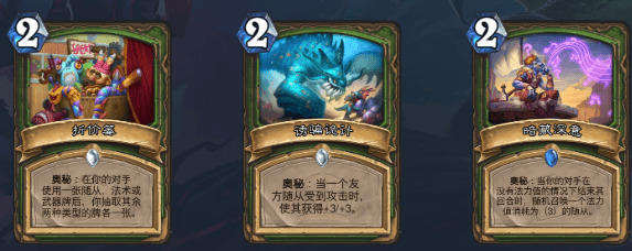简评:法师奥秘退了异议和复仇之像后换回来了这俩垃圾,奥秘配合又变得几乎不可用了;而猎人的奥秘整体就强很多了,折价篓定向检索武器,暗藏深意2招3节奏极强,诱骗诡计恶心随从交互,各有过人之处。建议法师不要选取寻物解谜,派送机最好不要在奥秘形态下使用;猎人奥秘强度较高,体系相关卡可以适当抓取,泰坦锻造陷阱更是强度极高的单卡。