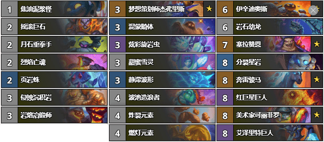 5.元素池(只列举中立、法师、萨满)——烈焰亡魂、燃灯元素等元素链体系卡