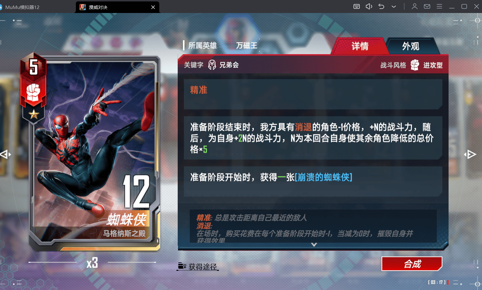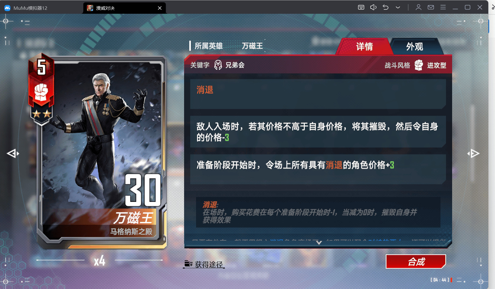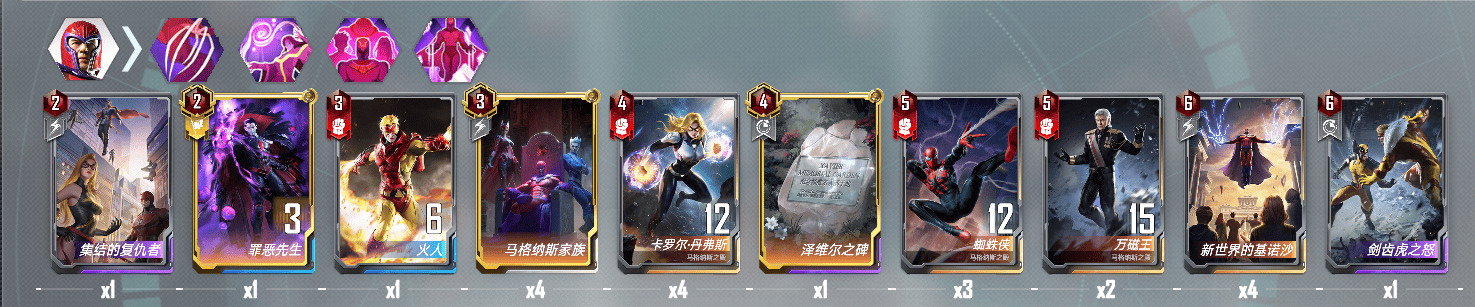 万磁王 调整费用的重要卡 如果遇到了召唤系的流派 可以合成二星 然后蜘蛛侠2+1来避免费用增加