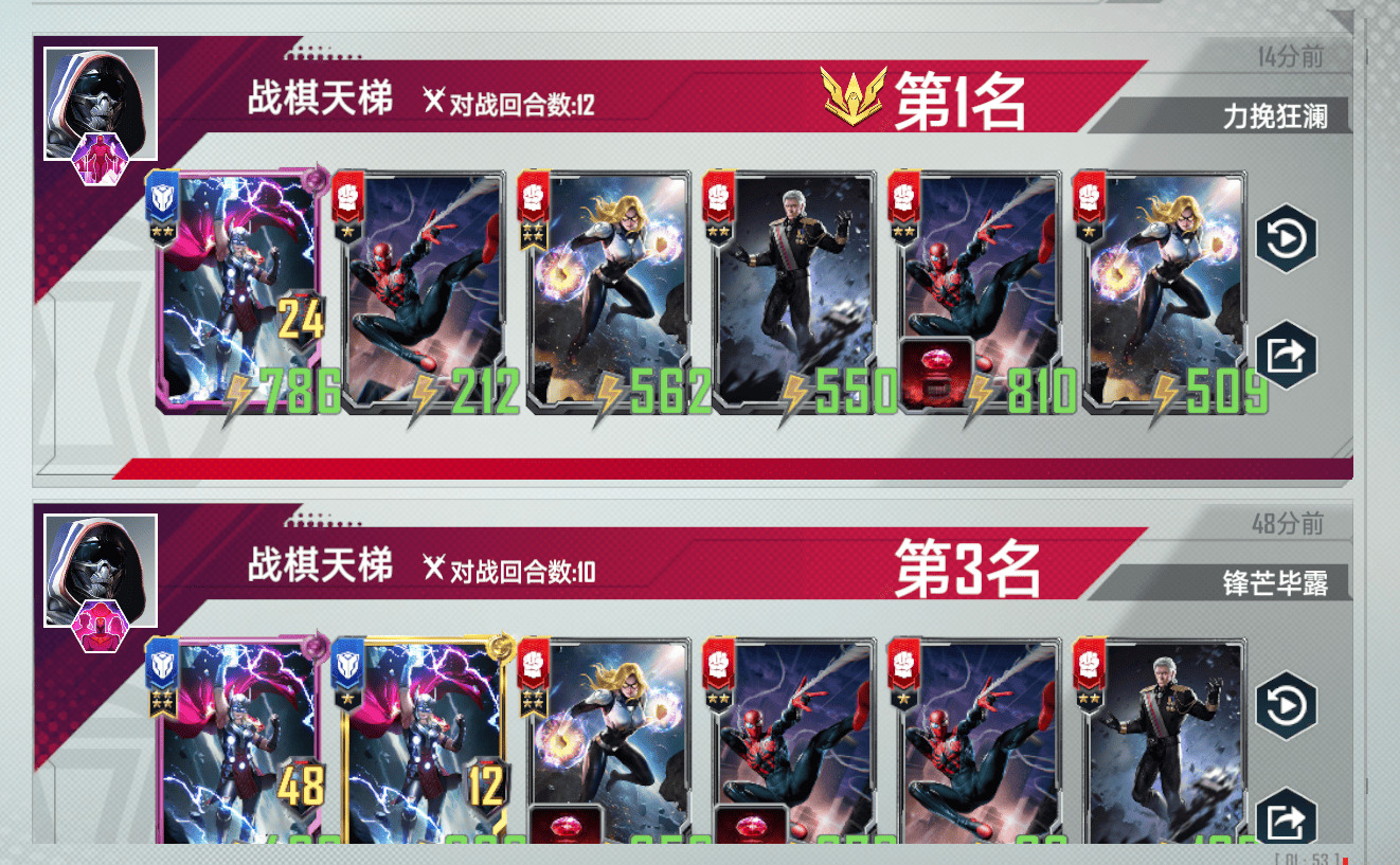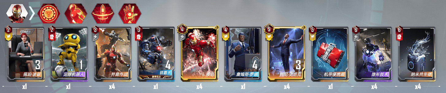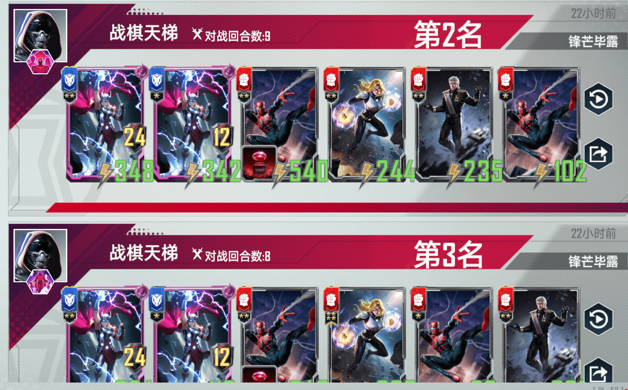 这两张是调整的核心卡 老万每回合+2 2+1的蜘蛛侠回合结束-2 保证不消退的同时能够战力最大化