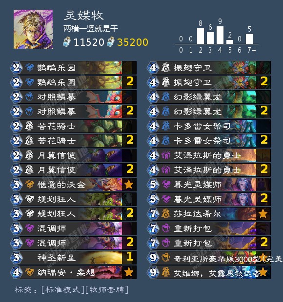 牧师已经苦了快六个版本了,这个版本竟然还退烧了,灌注牧高达30的胜率甚至比脚本贼还要低,真是太coooool了!牧师的灌注一次只给看两张,甚至比发现还要捞,但是又是实打实的资源,那么能不能效仿隔壁小德,灌注该灌还灌,但是就是除非没事干,否则不用技能。那么该做什么事?地标规划狂人灵媒师把艾维娜大树或者奇利亚斯变一费,有没有搞头?打中期节奏,大伙还有啥好的思路可以分享分享