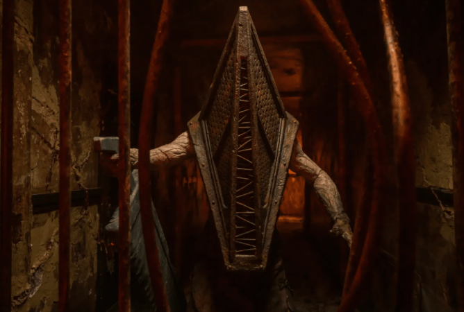 《重返寂静岭》电影于2022年10月首次公布,但直到2024年5月,《重返寂静岭》才曝光了经典怪物——三角头。
