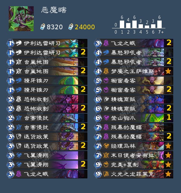 强烈推荐一套兼具强度和娱乐性的卡组,新赛季靠该卡组打到传说1000。主要依靠亡语套带来的费用差优势实现中后期超展开,源源不断地造出巨大场面。卡组随机性较强,比较吃熟练度和牌序。这个版本舍弃了火龙,提高了卡组稳定性。