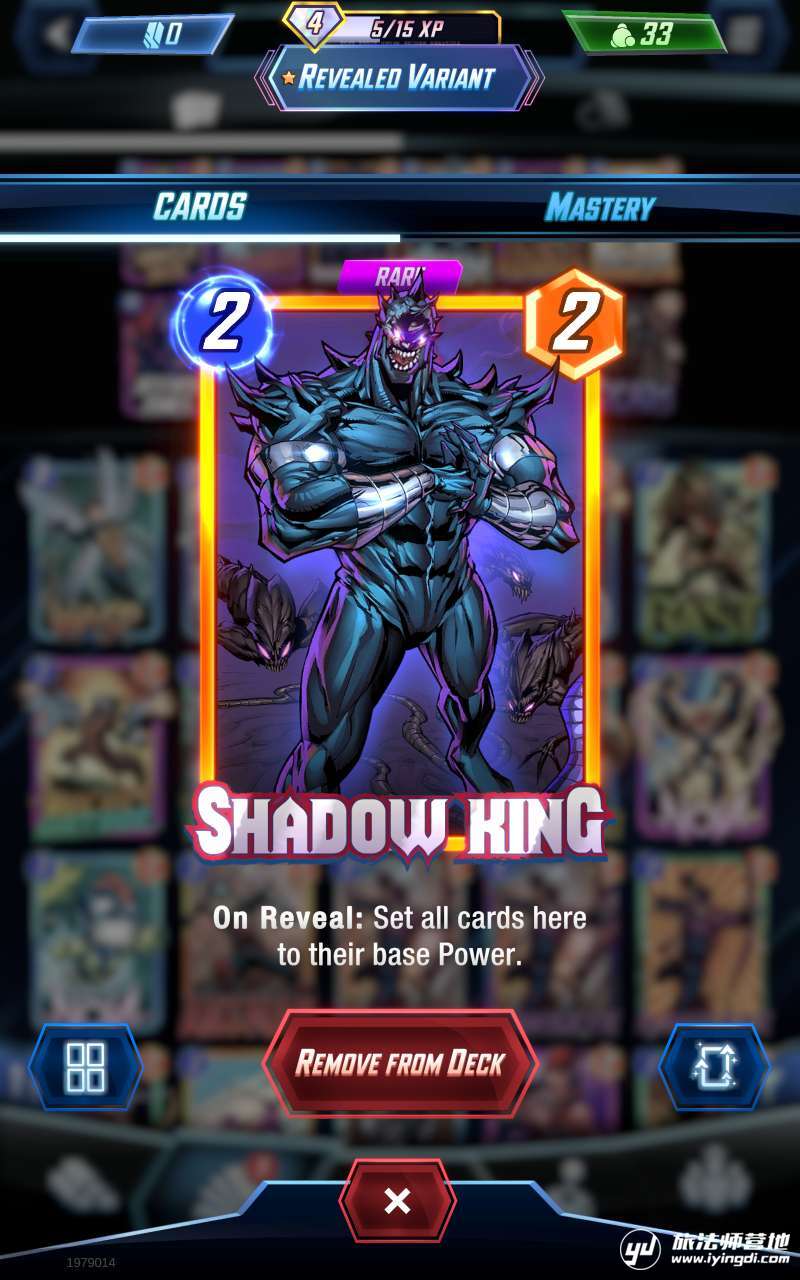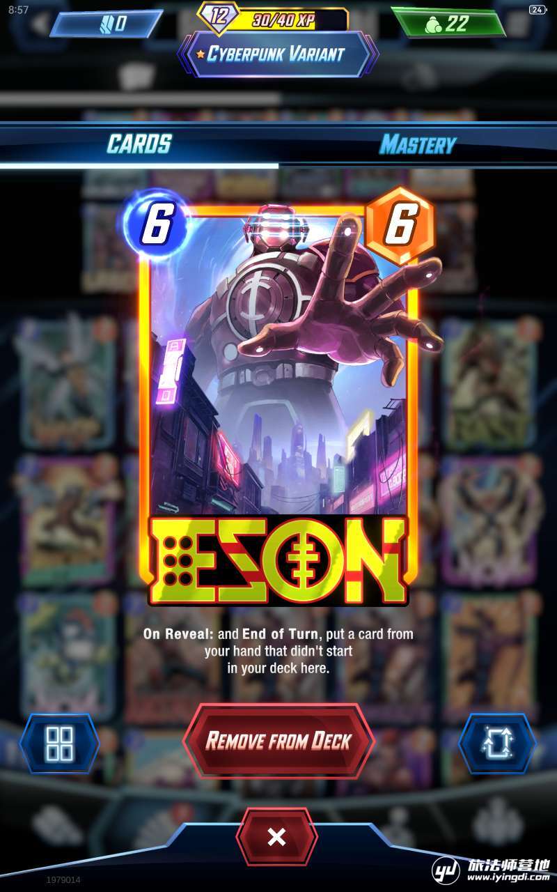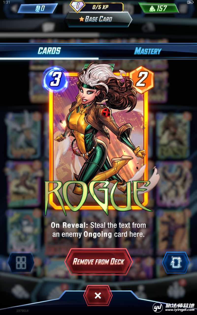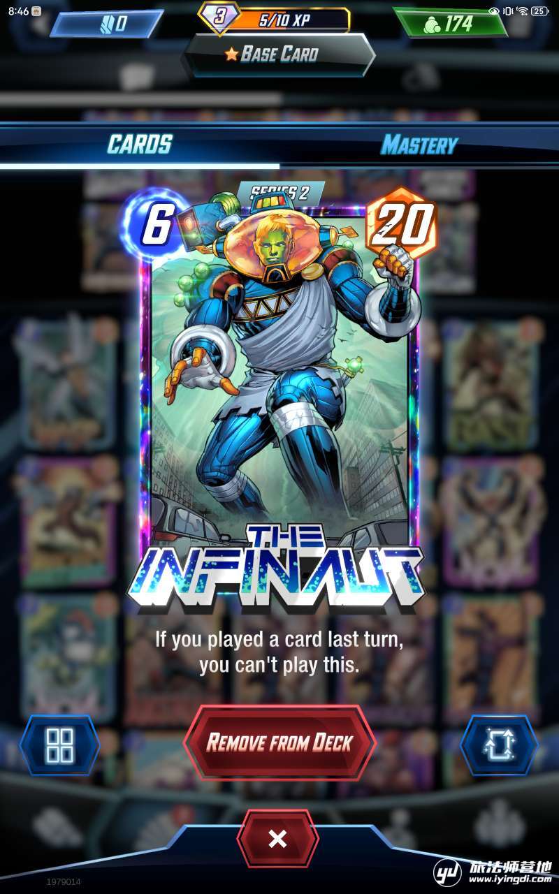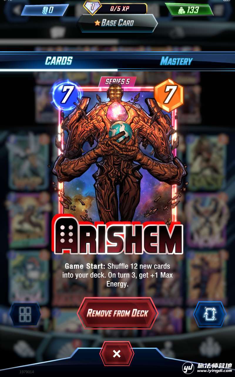 “你场上每有一张不属于你卡组的牌,此牌能量消耗减一”,这张卡能搭配灭霸和阿里瑟姆,也是张好卡。