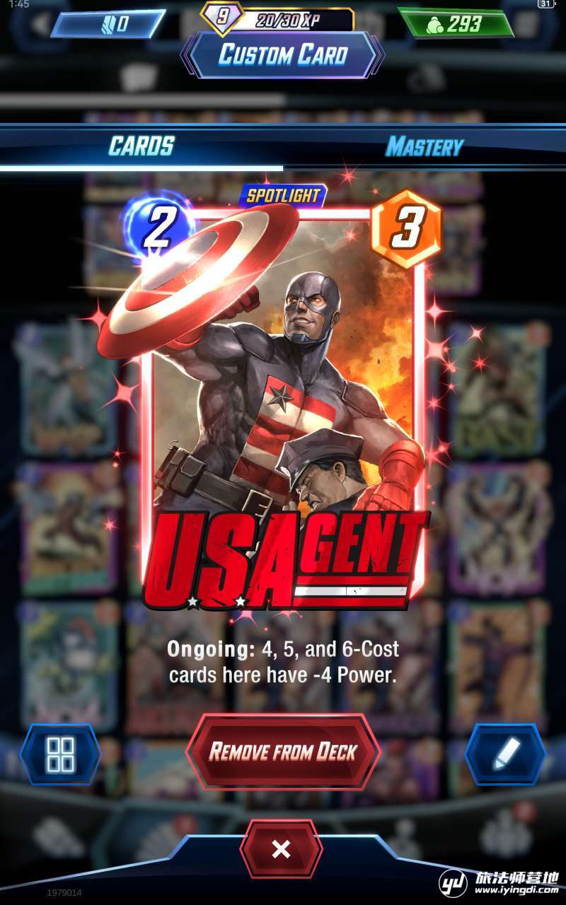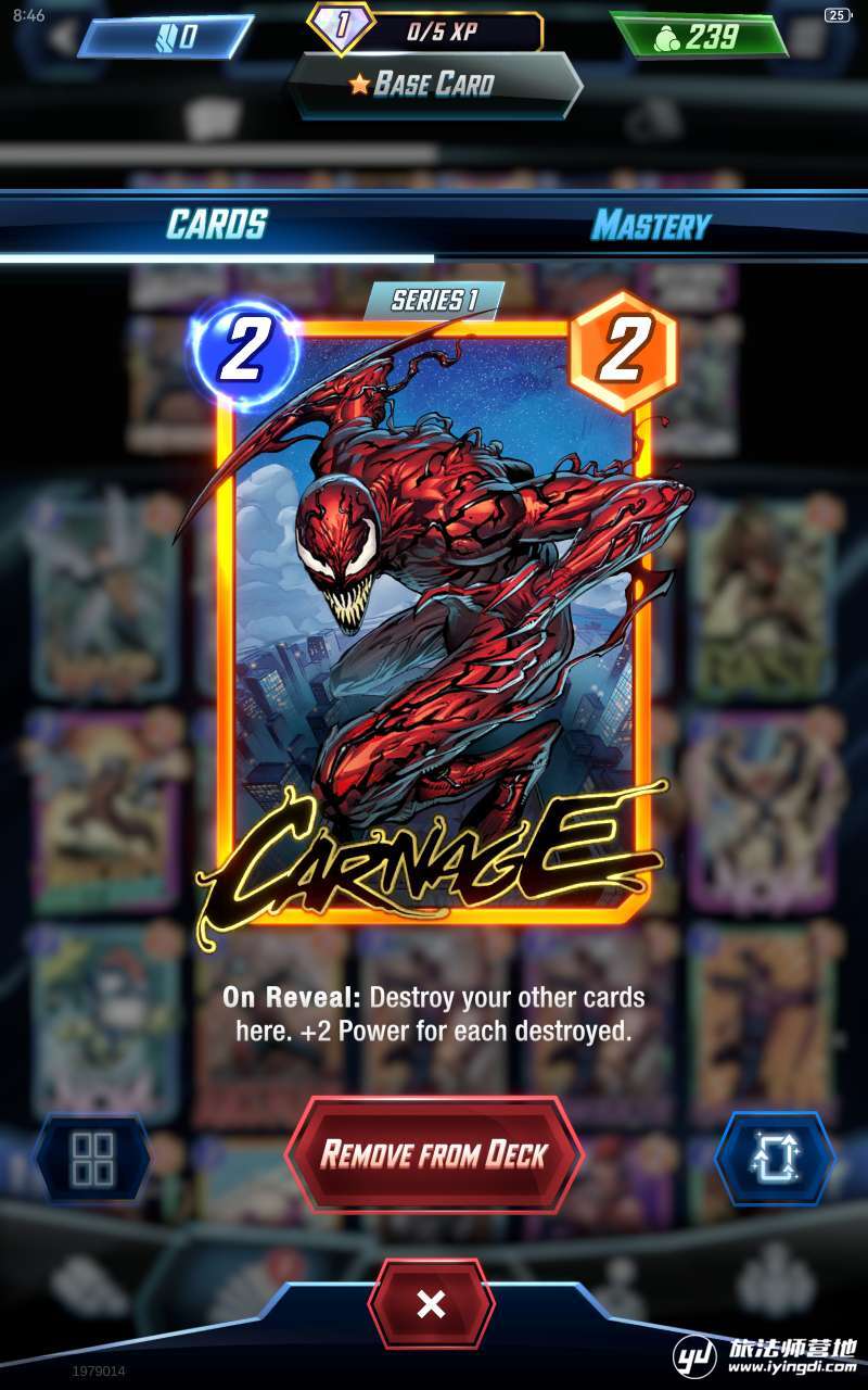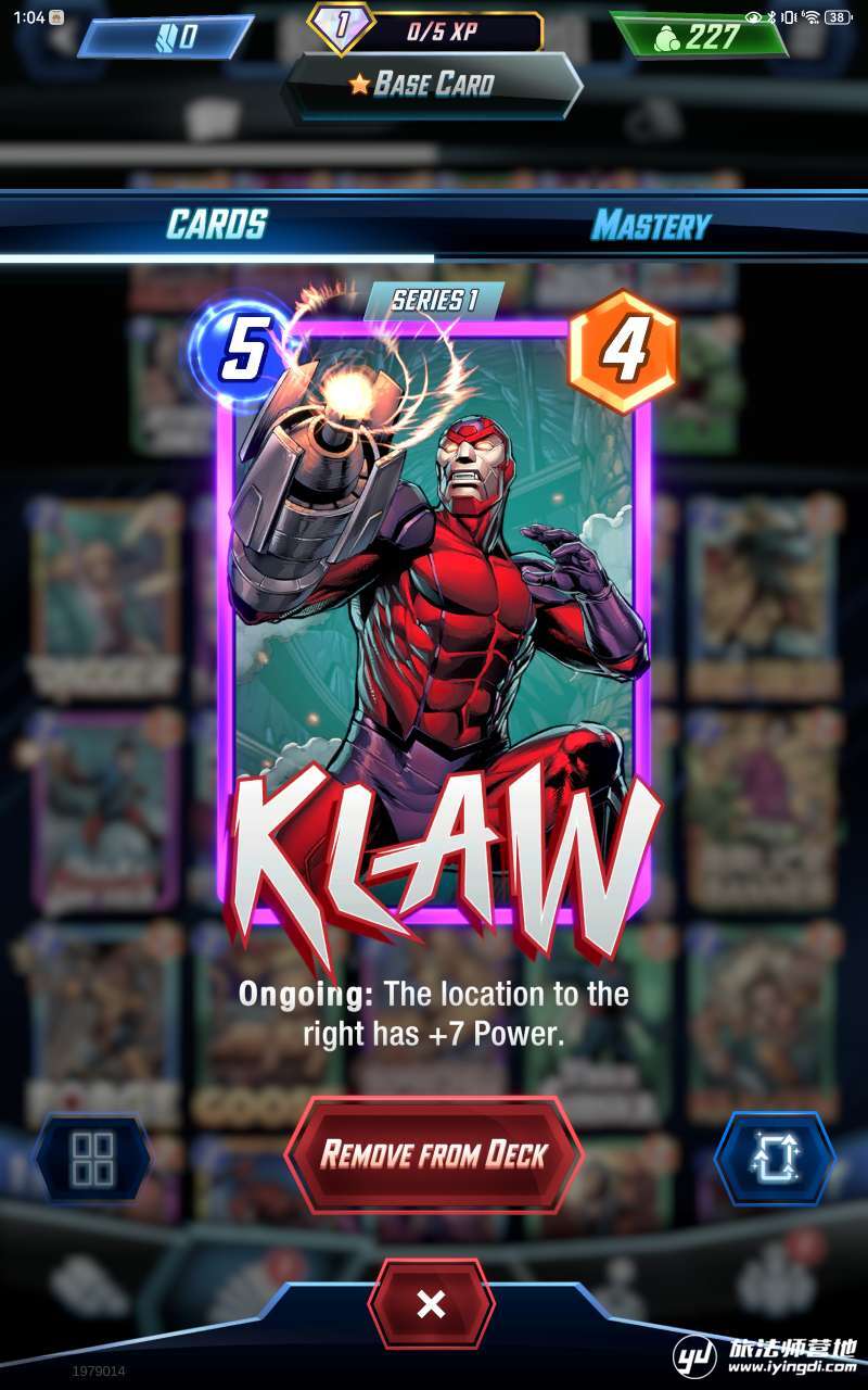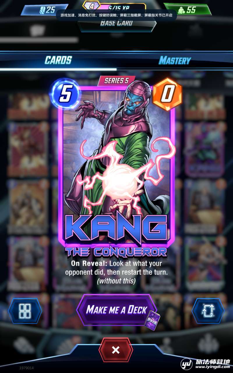“你场上每有一张不属于你卡组的牌,此牌能量消耗减一”,这张卡能搭配灭霸和阿里瑟姆,也是张好卡。