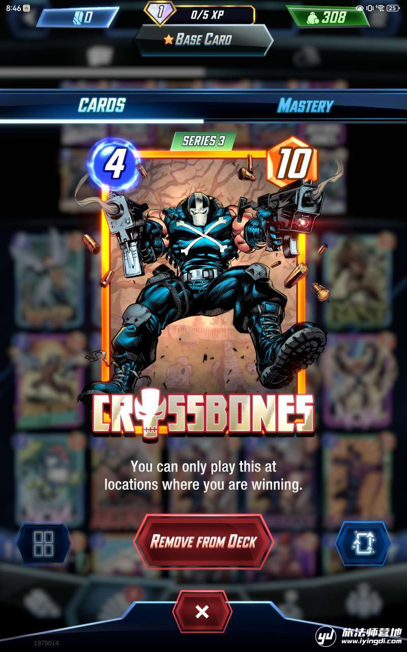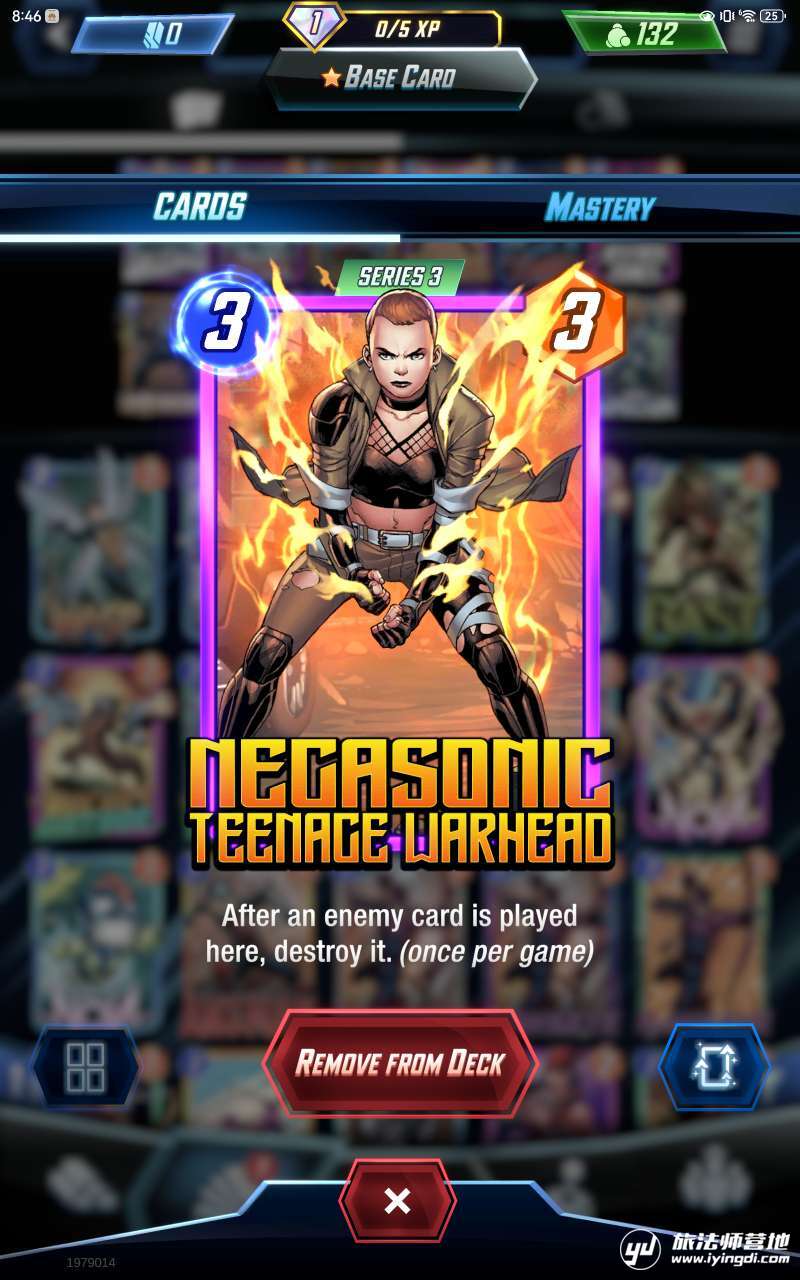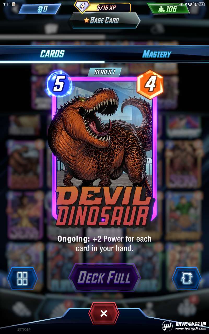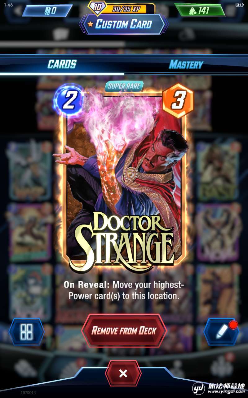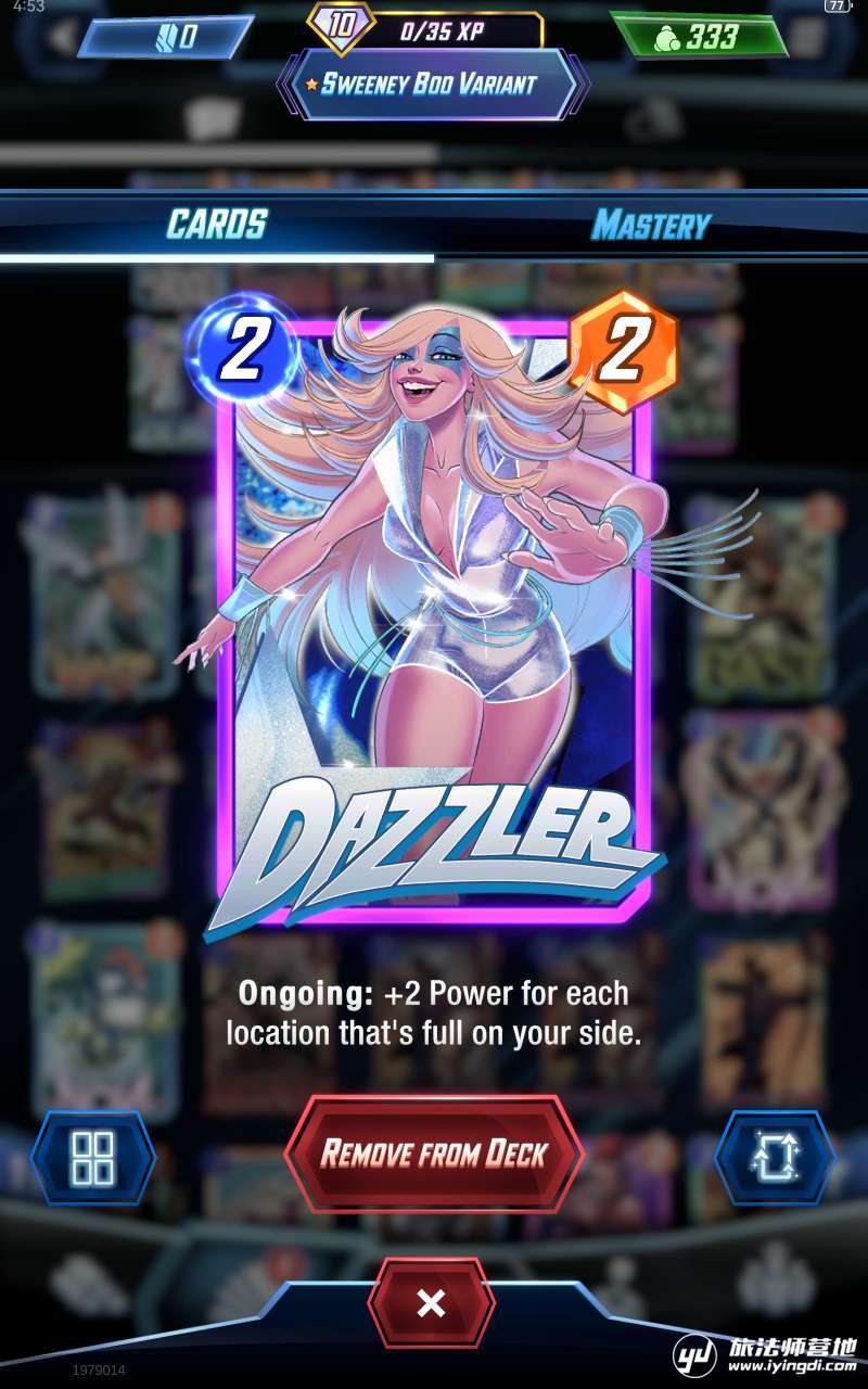 “你场上每有一张不属于你卡组的牌,此牌能量消耗减一”,这张卡能搭配灭霸和阿里瑟姆,也是张好卡。