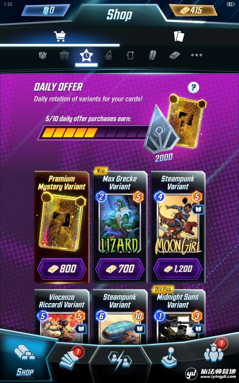 再说说游戏里的代币:下图中左上角的蓝点是用来升级卡牌的,右上角的金块是用来购买游戏中各种物品如变体,蓝点,竞技场门票。。。下图收藏家商店(TOKEN SHOP) 右边是收藏家代币,用来买终极变体或合卡