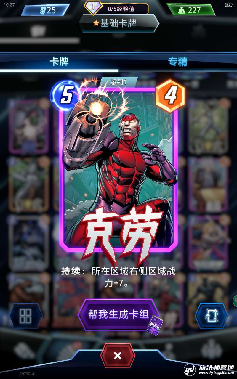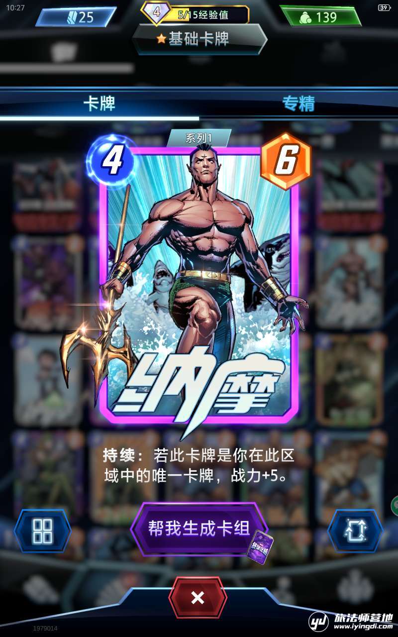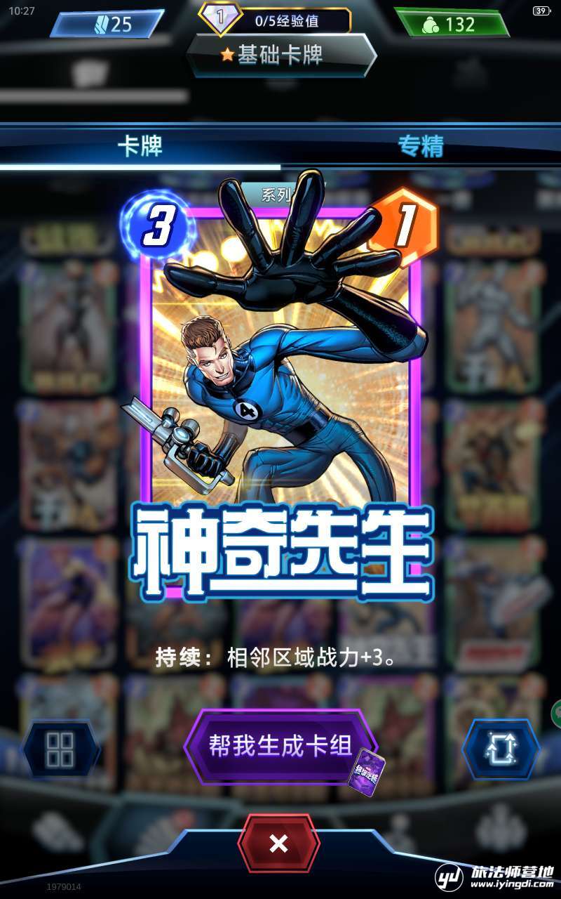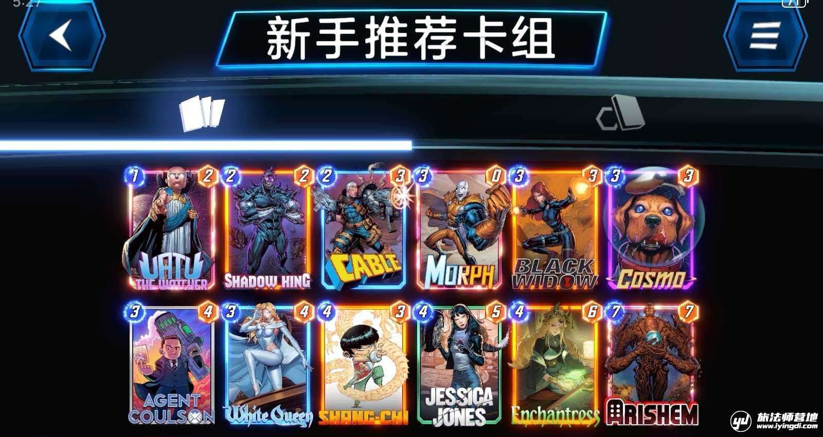 这张卡表述很清晰,新玩家需要注意的是“回合结束”(End of Turn) 是每回合结束都会拉一张牌下来,这张卡同时具有揭示和回合结束的能力。可以搭配阿里瑟姆,尼克弗瑞,科尔森(周年庆官方送过)等牌。 接下来说说新手最关心的怎么用有限的卡在天梯或者征服中能够应对收藏树比自己高的对手,之前说了我自己作为新手时期的卡组,在这里再给你们提供一些针对新手如何打出漂亮组合拳的思路,让你们自由搭配,低系列的卡牌也能战胜高级别的对手 1. 钢铁侠,别看他是一张系列一的卡牌,他的效果“将你在此区域的战力翻倍”,如果搭配上狂攻,美国队长,蚁人,将会打出88点战力 2. 纳摩加克劳加神奇先生能打出21点战力,前提是纳摩是中路或右路的唯一一张牌