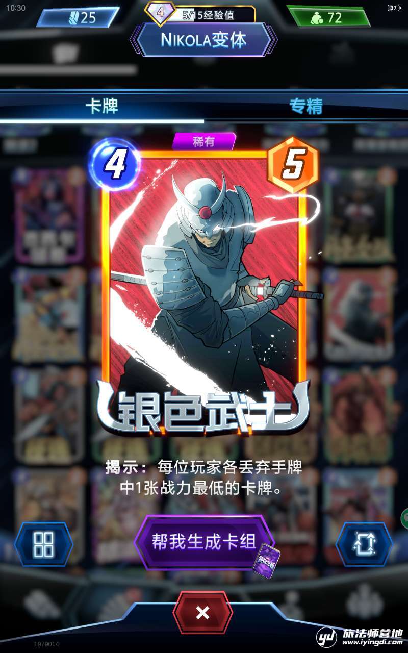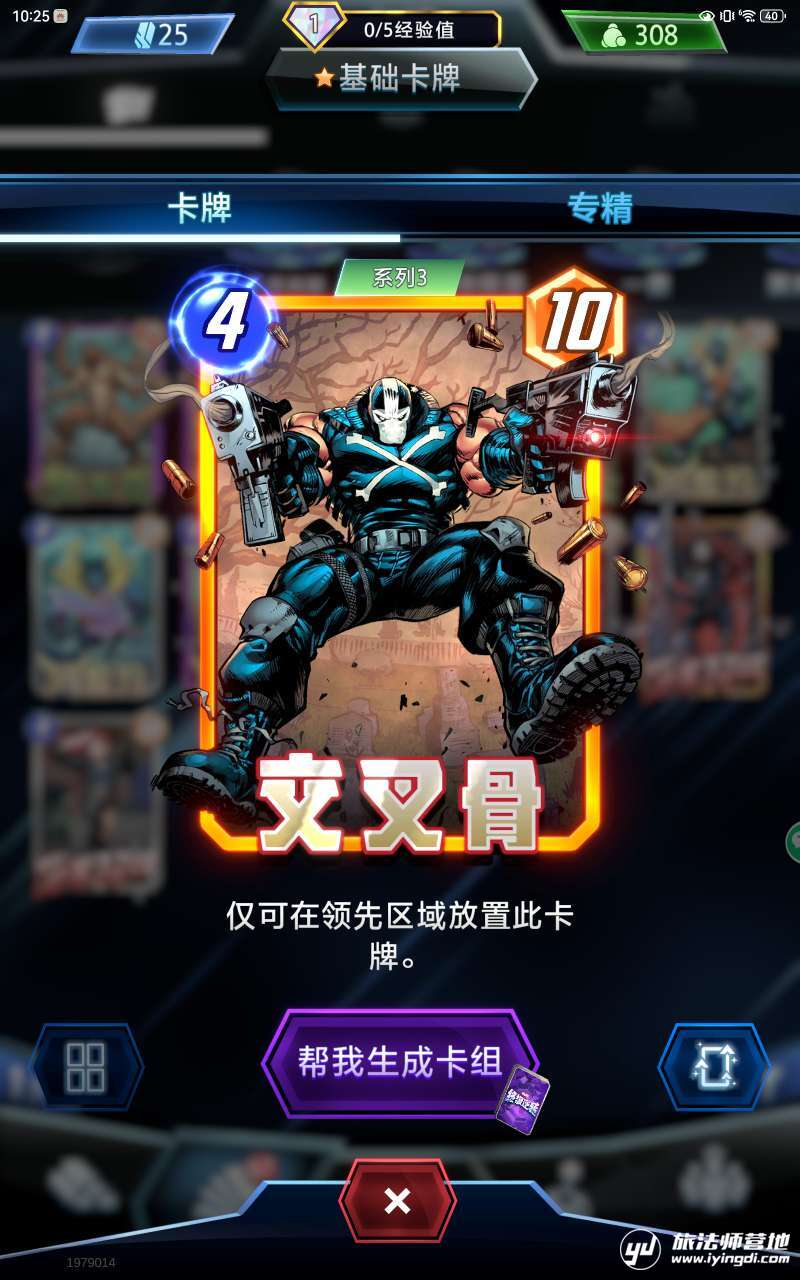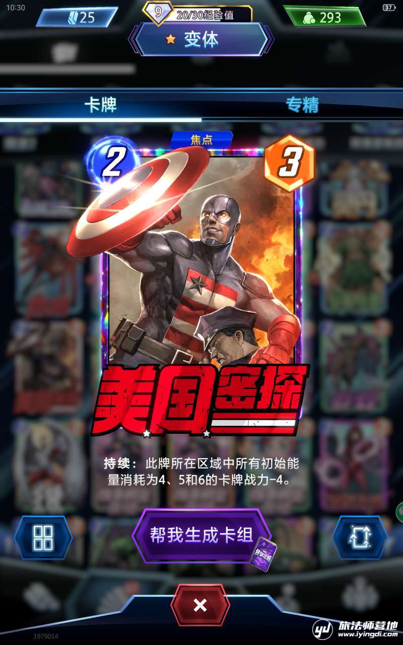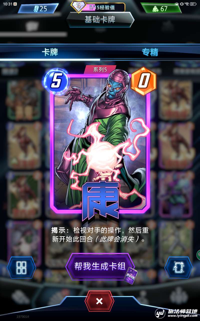 这张卡表述很清晰,新玩家需要注意的是“回合结束”(End of Turn) 是每回合结束都会拉一张牌下来,这张卡同时具有揭示和回合结束的能力。可以搭配阿里瑟姆,尼克弗瑞,科尔森(周年庆官方送过)等牌。 接下来说说新手最关心的怎么用有限的卡在天梯或者征服中能够应对收藏树比自己高的对手,之前说了我自己作为新手时期的卡组,在这里再给你们提供一些针对新手如何打出漂亮组合拳的思路,让你们自由搭配,低系列的卡牌也能战胜高级别的对手 1. 钢铁侠,别看他是一张系列一的卡牌,他的效果“将你在此区域的战力翻倍”,如果搭配上狂攻,美国队长,蚁人,将会打出88点战力 2. 纳摩加克劳加神奇先生能打出21点战力,前提是纳摩是中路或右路的唯一一张牌
