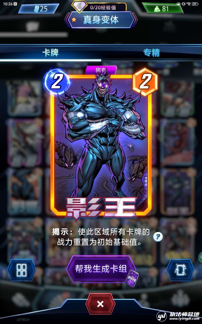 钢铁侠。。。这些基本上都是系列1或系列2的卡,新手玩家较容易获得,思路也很简单,前四回合占下一个区域,第六回合打下20战力的次元行者,前四回合打下卡耐基和冬兵获得11点战力,第四回合打下交叉骨或杰西卡琼斯获得10战力左右,然后就有了二十战力,第五回合空过,第六回合打下次元行者。这个卡组我在当时有较大概率能拿下魔方,当时新手匹配到的对手也相对弱一些也是这个卡组能吃分的原因之一。这是我作为新手时期的卡组和思路,可以参考用用(仅针对新手snap玩家) snap 的玩法和功能介绍我就不过多赘述了,毕竟snap的玩法相对简单易懂,界面清晰容易理解,但是有些卡能力的描述对于新手玩家来说可能有点误解,就拿这次S13周年庆赛季的卡举个例子: 1.影王 ShadowKing(周年庆官方送的卡)