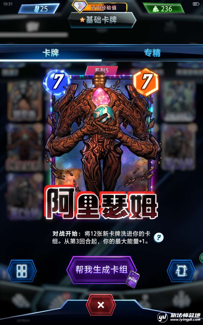 “在游戏开始时将12张随机卡牌洗进你的卡组中,并从第三回合开始时得到额外1点数的能量”,这张牌之所以是新手玩家的首选卡,是因为阿里瑟姆能让你打出你没有的牌,能够一定程度上解决新手玩家卡不多,系列低的问题,还能在第三回合打下4费的卡,第四回合打下5费的卡,以此类推。那么原始卡组应该怎么组能