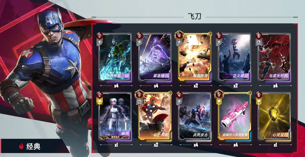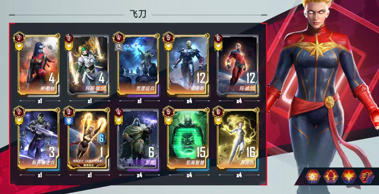 5费:塔洛斯*4(核心卡,搭配罗南可在先制阶段结束战斗),至高*4(玛威尔三人链接组件)