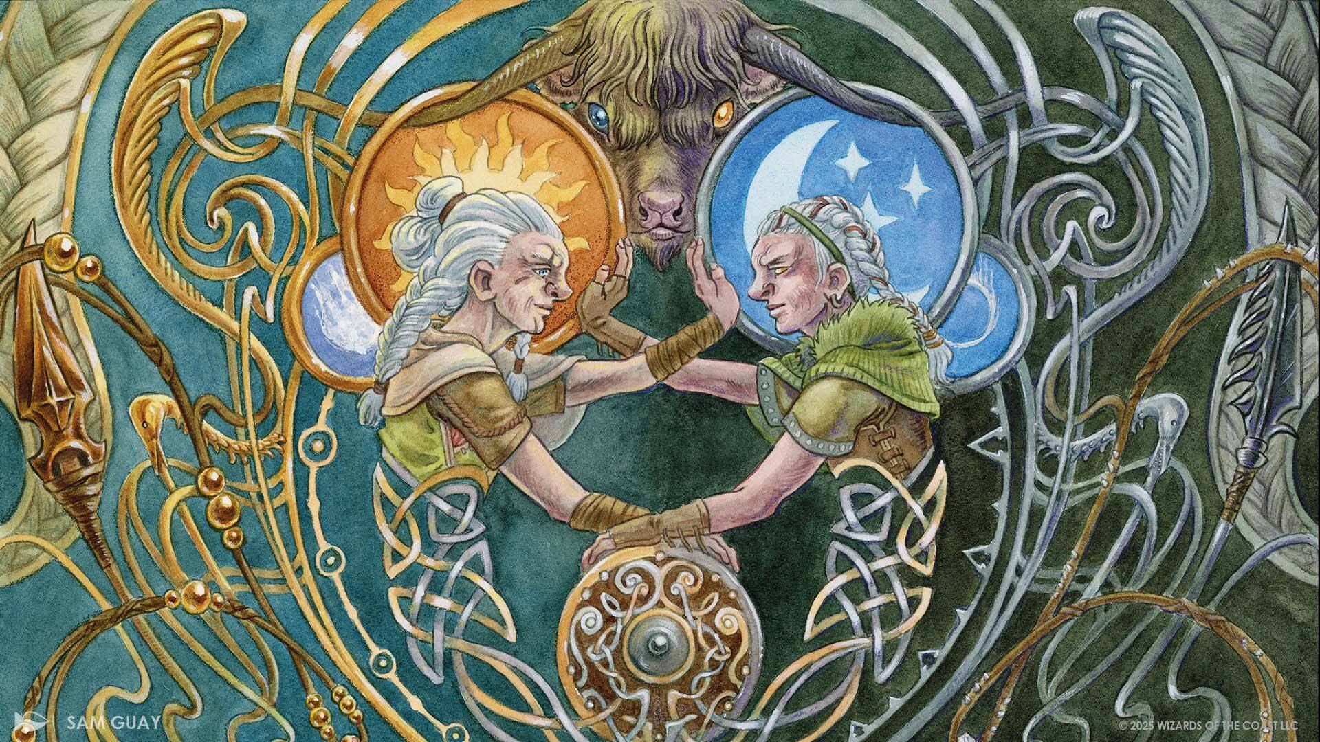 两个庞然大物游荡在洛温-暗影荒原之上,大地在他们的足迹下变化。在其中一个醒着时,另一个就应该去睡觉,等候自己的回合来平衡时空中的光与暗。他们的现身意味着什么仍然不明。不过,已经有很多居民将这两个存在视作神明来崇拜,尽管它们似乎对生活在时空上的众生向来一视同仁。