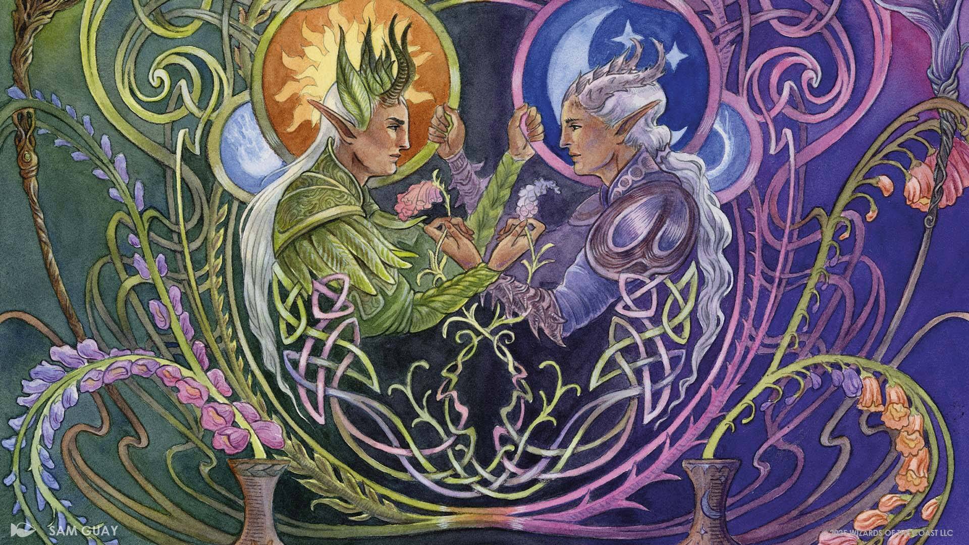 千年前,所有仙灵的母亲和女王——欧娜运用伟大极光保全自己在循环期间的记忆与身躯,同时也让自己掌控了时空。每过三百年,时空就会向着另一面相转变。如此一直延续到大概四十年前,循环遭到了大愈合事件(整个多重宇宙因时缝累积受到的损伤被愈合)干扰。无数世代以来头一回,欧娜也开始害怕自己受到伟大极光影响。在她创造的第一个化身反叛后,她创造了一个复制体马拉兰,并给这个晨曲妖精复制体注入了自己的一片灵魂,如此她便不会失去记忆。然而,复制体马拉兰获得了自我意识,与洛温各地的其他势力一同开始调查欧娜和她的妖术。在伟大极光发生并把整个时空变为暗影荒原后,欧娜被马拉兰、妖精黎兹、洁英布莉吉、美洛人鱼席格、炎身灰儿以及树妖幼苗柯芬诺组成的联军击败。虽然欧娜倒台、其躯体也被毁灭,但她的意识仍然隐藏,暗中缓缓恢复力量,想方设法夺回王位。在她的统治结束后,时空开始融合在一起,摆荡之年由此开始。马拉兰取得了仙灵女王的头衔,与黎兹定下一道生死契。如果欧娜又有卷土重来的迹象,黎兹必须杀死马拉兰。而在此之前,他绝不可以死去。