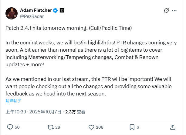 自9月24日S10赛季开服以来,《暗黑破坏神4》S10赛季仅仅过去了两周时间。然而,《暗黑4》社交兼内容营销总监Adam Fletcher已开始发推预告S11赛季内容了。
