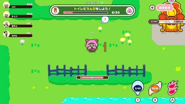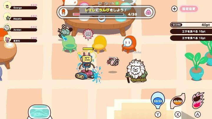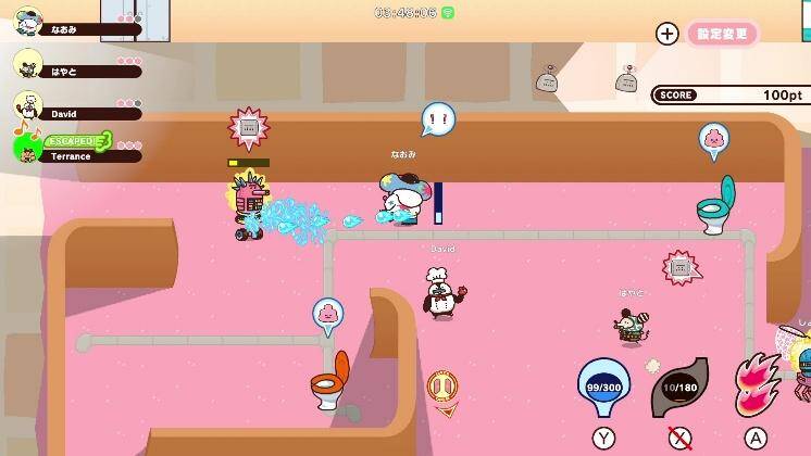 本作以“吃!睡!拉!”为主题,是一款世界首款(?)“排泄型逃脱动作派对游戏”。
