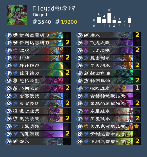3.注意牌库里的随从,因为一共就7张,所以要不要记牌器都记得过来,一定要等553 424牌库里滤干净了,再上美术家,不然没拉出审判官会很蠢。
